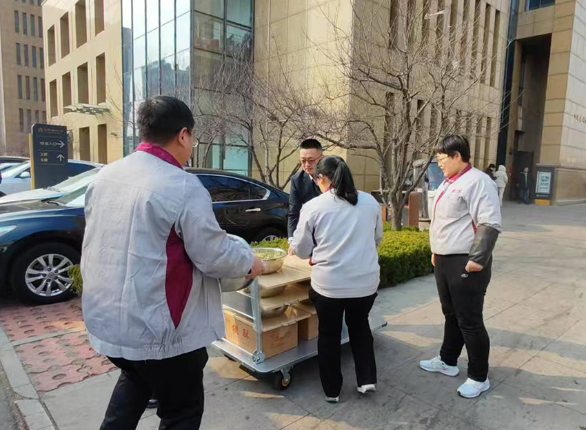 不到十點(diǎn),面和好了,兩種餃子餡也調(diào)制完成。封好保鮮膜,做好一切衛(wèi)生保護(hù)工作,徐佳佳、唐姍姍、于海霞等員工又一起將食材配料裝車,按時(shí)給客戶送到活動(dòng)現(xiàn)場(chǎng)。事后,客戶專門打來(lái)電話表示感謝,告訴我們包餃子比賽活動(dòng)順利進(jìn)行,舉辦得也非常成功!他們不但對(duì)這次食材配料的齊全、配送的時(shí)效點(diǎn)贊表?yè)P(yáng),還對(duì)餃子餡的味道贊不絕口!
